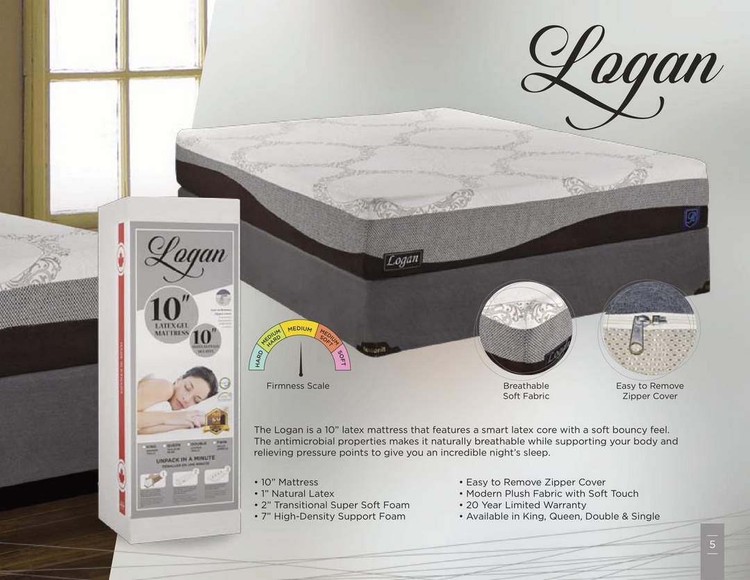The Logan is a 10” latex mattress that features a smart latex core with a soft bouncy feel. The antimicrobial properties makes it naturally breathable while supporting your body and relieving pressure points to give you an incredible night’s sleep.