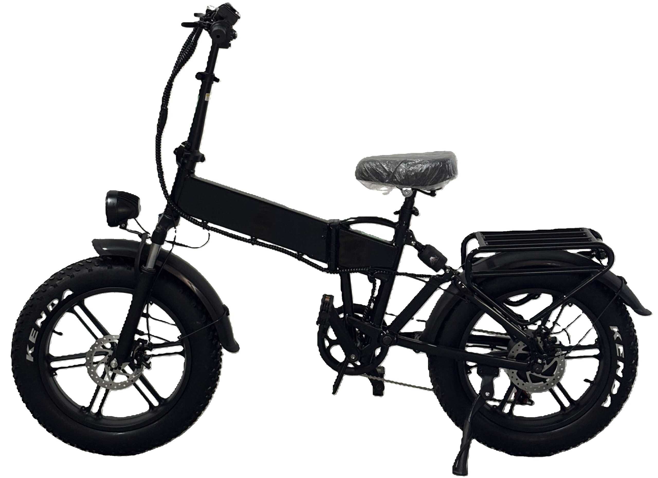 500 watt brushless motor, Max load 150 KG. Max Speed 25-45 KM/H (governed) Foldable, 20 inch fat tire, 48 Volt 10.4A battery